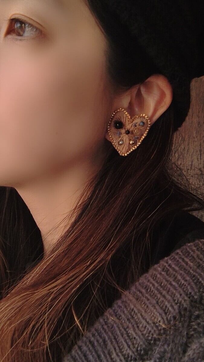 【金具交換可】ハートの刺繍耳飾り